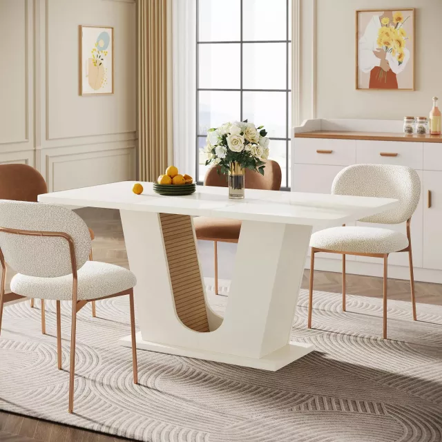 Bring a touch of elegance and modern style to your home with this 55-inch rectangular dining table. Designed for both style and function, it comfortably seats 4 to 6 people, making it perfect for family meals, friendly gatherings, or intimate dinner parties. Its sleek cream white finish blends effortlessly with any décor, from contemporary apartments to cozy family homes.