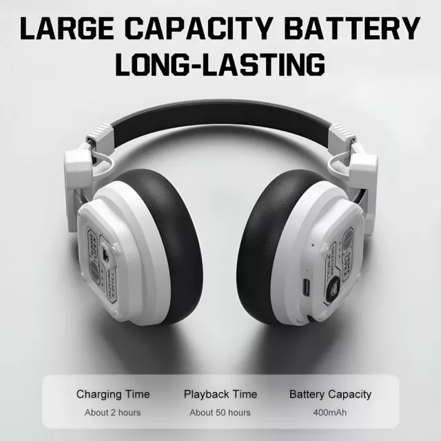 Every detail has been fine-tuned to give you the competitive edge. The headset offers HiFi stereo sound with deep bass and clear highs across a full 20Hz–20kHz frequency range, letting you hear every footstep and explosion in lifelike clarity. It boasts an impressive 50 hours of playback on a single charge, and recharges fully in just 2 hours using the modern USB Type-C interface. With a 15-yard wireless range, you can move freely without losing connection during intense matches.